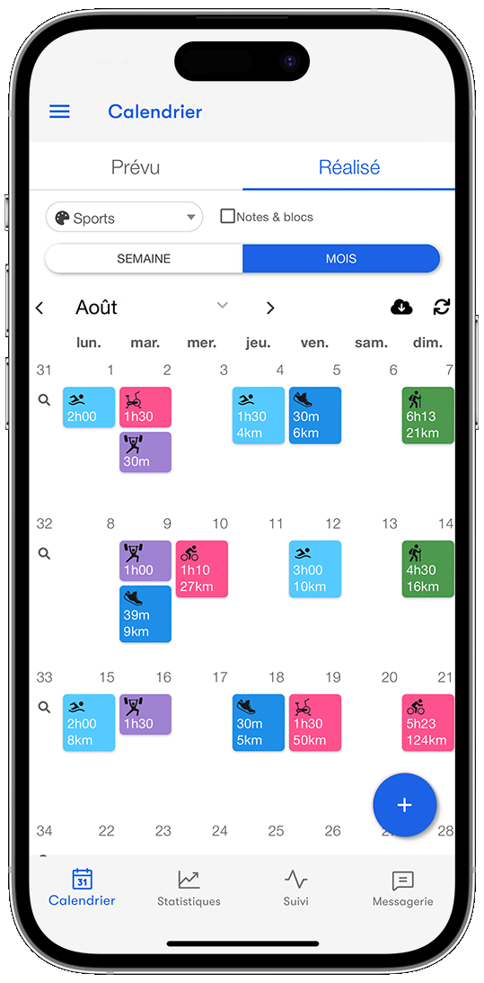 Planification : toutes les séances d’entraînement rangées dans un calendrier
